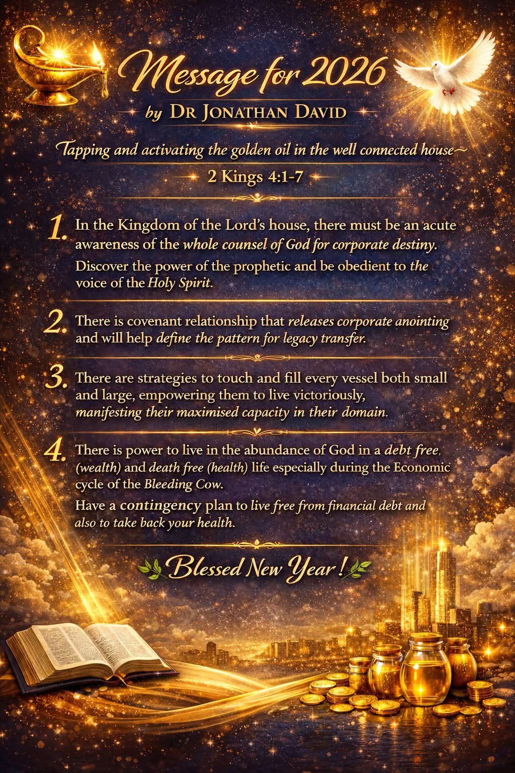 4. There is power to live in the abundance of God in a debt free, (wealth) and death free (health) life especially during the Economic cycle of the Bleeding Cow. Have a contingency plan to live free from financial debt and also to take back your health.